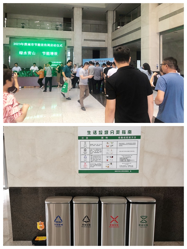 节能宣传周期间,淮南市机关事务管理局以四项活动为抓手,进一步推深做实公共机构能源资源节约和生态环境保护宣传工作:一是部门联动“开好头”。紧紧围绕宣传主题,会同市发改委于6月29日举办了节能宣传周启动仪式,现场设置“绿水青山、节能增效”签名墙,两家单位主要负责同志亲自参与,广大干部职工踊跃签名、反响热烈,为节能宣传周开了好头。二是形式多样“造氛围”。通过发放节能宣传资料、节能宣传品等形式,广泛开展节能宣传教育,进一步提高公共机构工作人员节能意识,凝聚生态道德共识,培育绿色社会风尚。三是突出实践“有重点”。截至目前,市政务中心办公场所631组分类垃圾桶已全部更换到位,并在醒目位置张贴了垃圾分类宣传画、垃圾分类指南,全力推进公共机构生活垃圾分类宣传工作,推动广大干部职工进一步树牢低碳意识和环保理念,主动参与生活垃圾分类实践。四是线上线下“云助力”。通过政务中心电子显示屏循环播放2020年节能宣传周海报,组织干部职工通过新华网手机移动客户端云直播频道集中观看全国公共机构节能宣传周云启动仪式,通过喜闻乐见、节俭有效的方式,利用“互联网+”优势,创新宣传形式,发挥出宣传教育的最大效能。