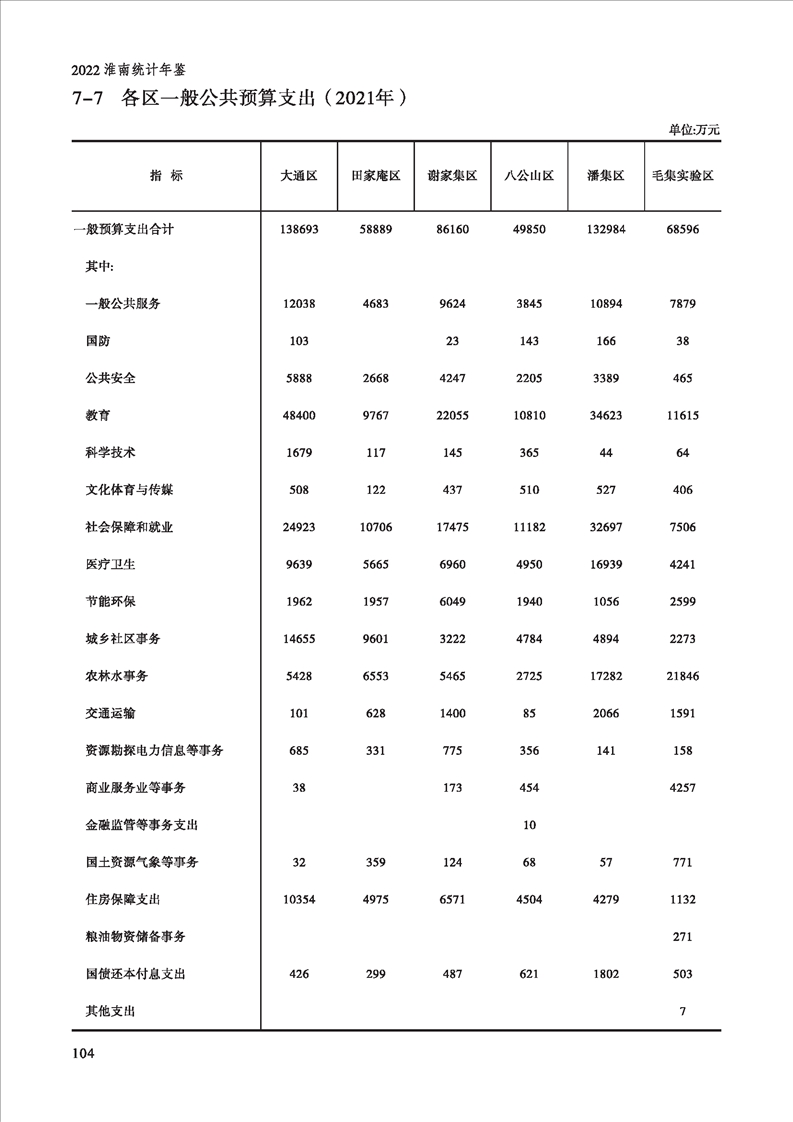 2022年淮南统计年鉴
