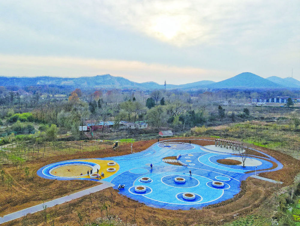 无人机拍摄的“淮南九大采煤沉陷区”综合治理项目提升工程“花境广场”(12月11日摄)。该广场位于综合服务中心南侧,西临南山路,总面积约1450平方米。广场设置休闲连廊,周围植被丰富,形成“特色花境”。