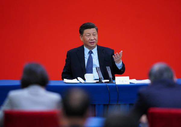 5月23日上午,中共中央总书记、国家主席、中央军委主席习近平看望参加全国政协十三届三次会议的经济界委员,并参加联组会,听取意见和建议。中共中央政治局常委、全国政协主席汪洋参加看望和讨论。新华社记者 谢环驰 摄